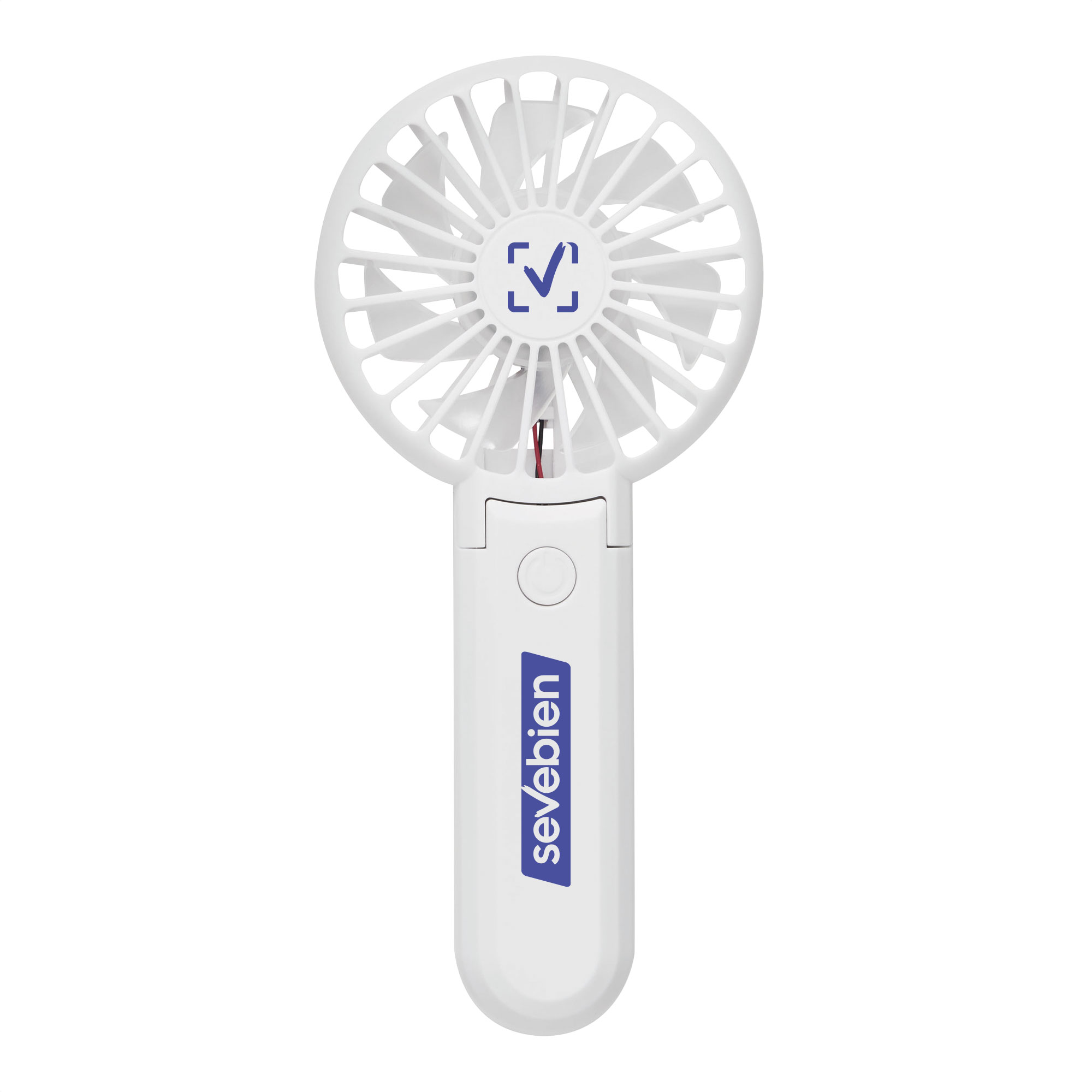 Frescura portátil, donde estés.Mini ventilador portátil. Plegable a 180° con doble función, de mano y de escritorio. Diseño compacto, tamaño de bolsillo, ligero y fácil de transportar. 3 velocidades (niveles de flujo de aire: bajo, medio y alto). Silencioso. Batería recargable via USB. Cable de carga USB C color blanco.Medidas: 7,8 x 17 x 2,5 cm. y 7,8 x 9,5 x 4,5 cm. (plegado)